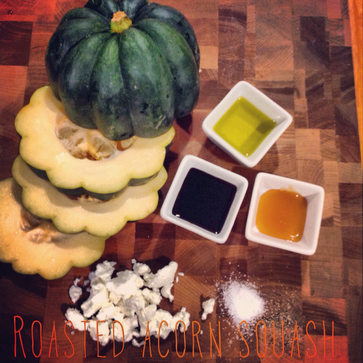 Acorn squash + olive oil + balsamic + local honey + goat cheese + s + p.