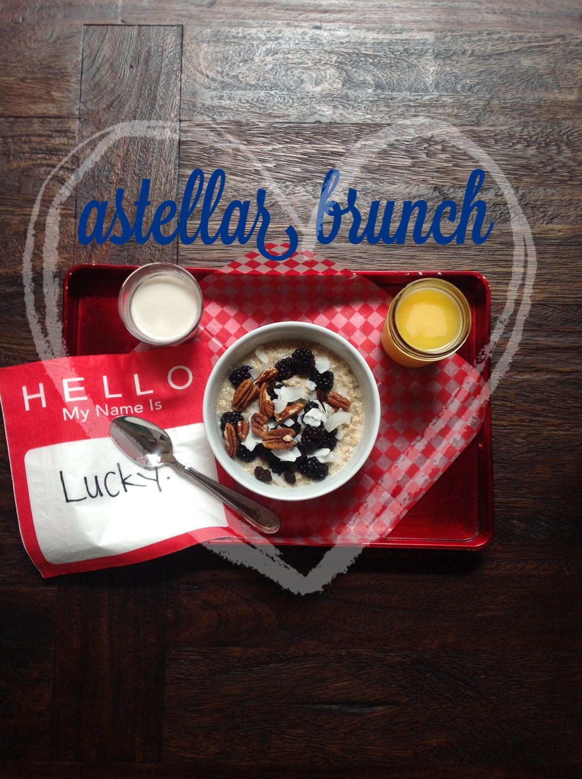 This year will be all about mastering health and balance. I want my husband to live forever and that starts with breakfast. Here we have gluten free oatmeal + fresh blackberries + shaved coconut + lupita’s local honey + toasted pecans + raisins + almond milk + fresh squeezed oj.