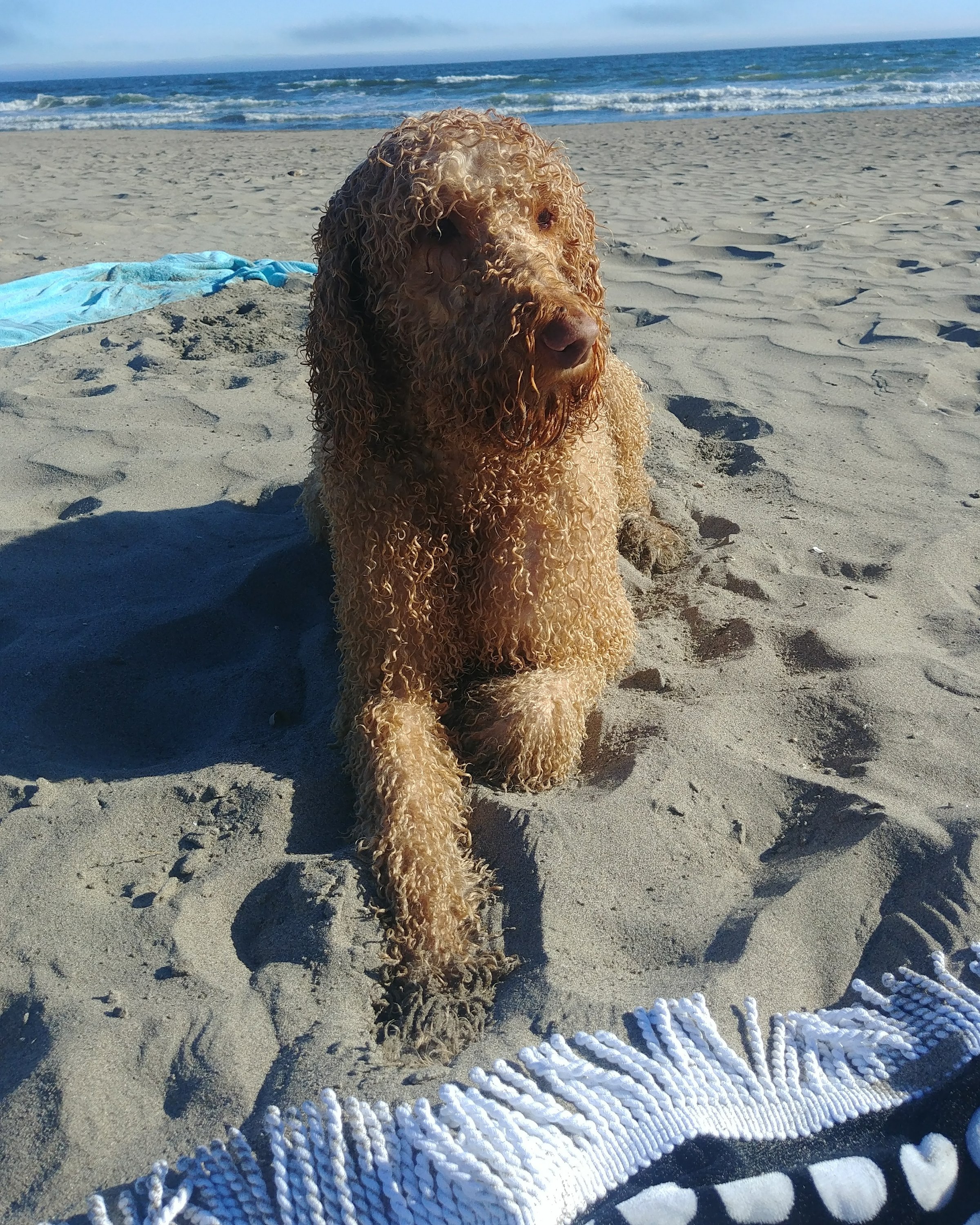 We enjoyed a nice early sunset beach hang with poodle ocean dips before heading to Bolinas to watch the Warriors crush the Pelicans.