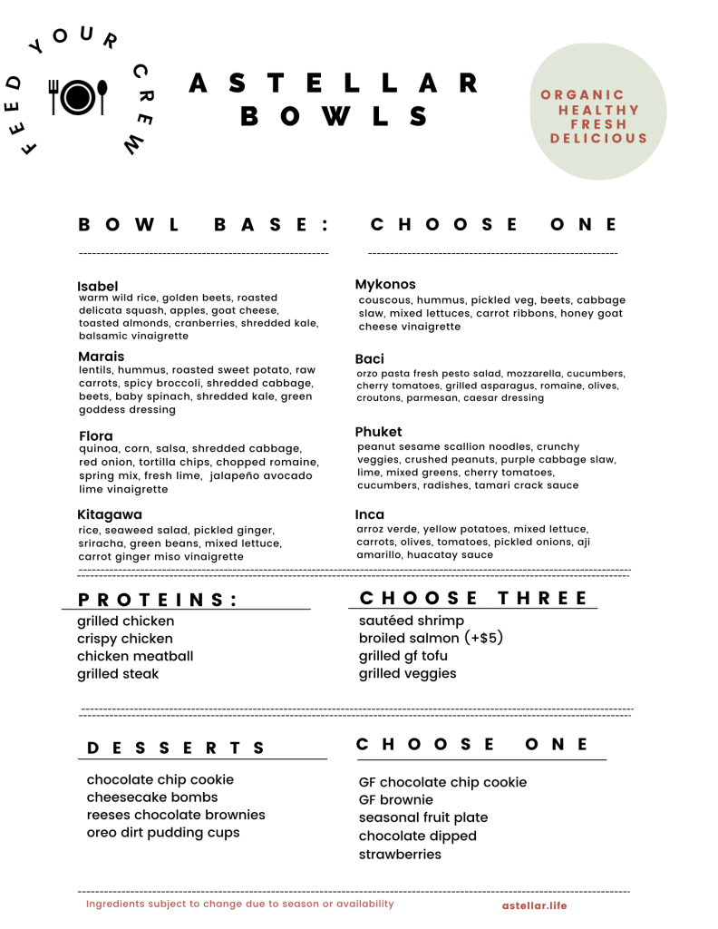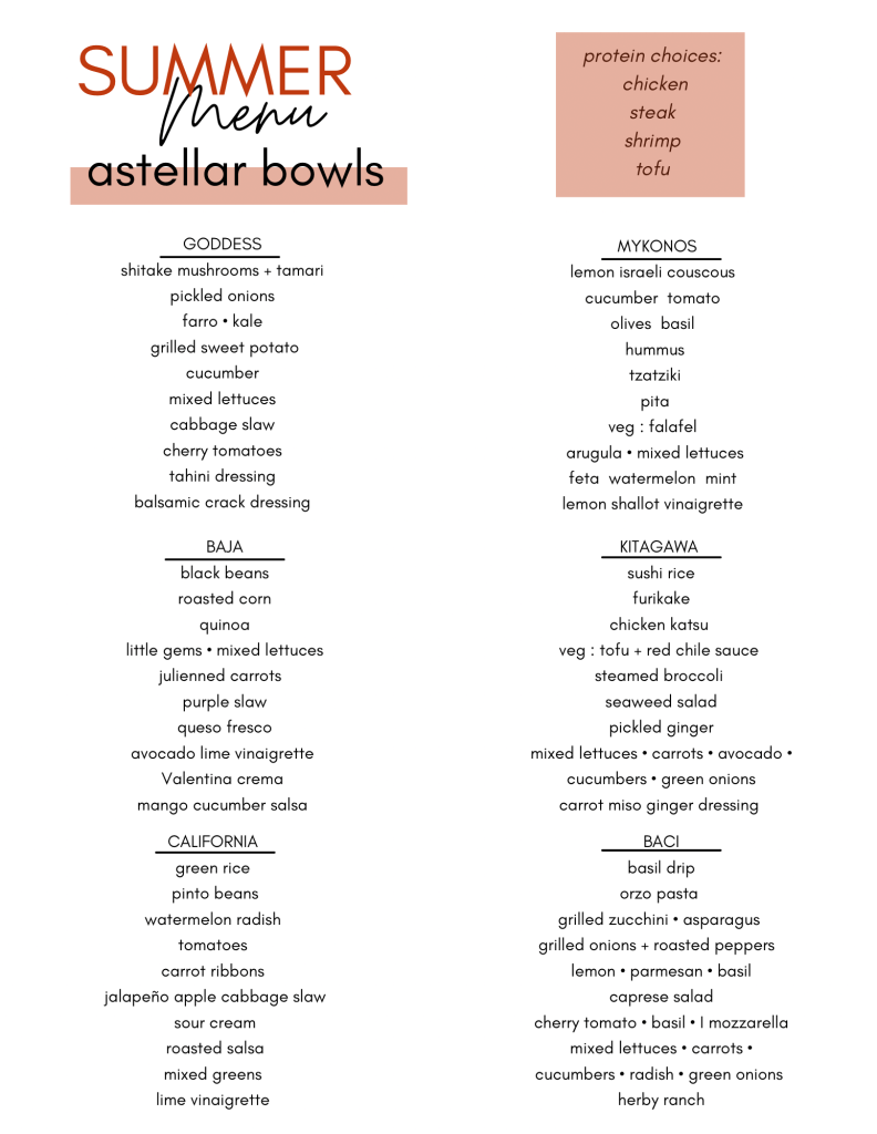 Astellar bowl menu